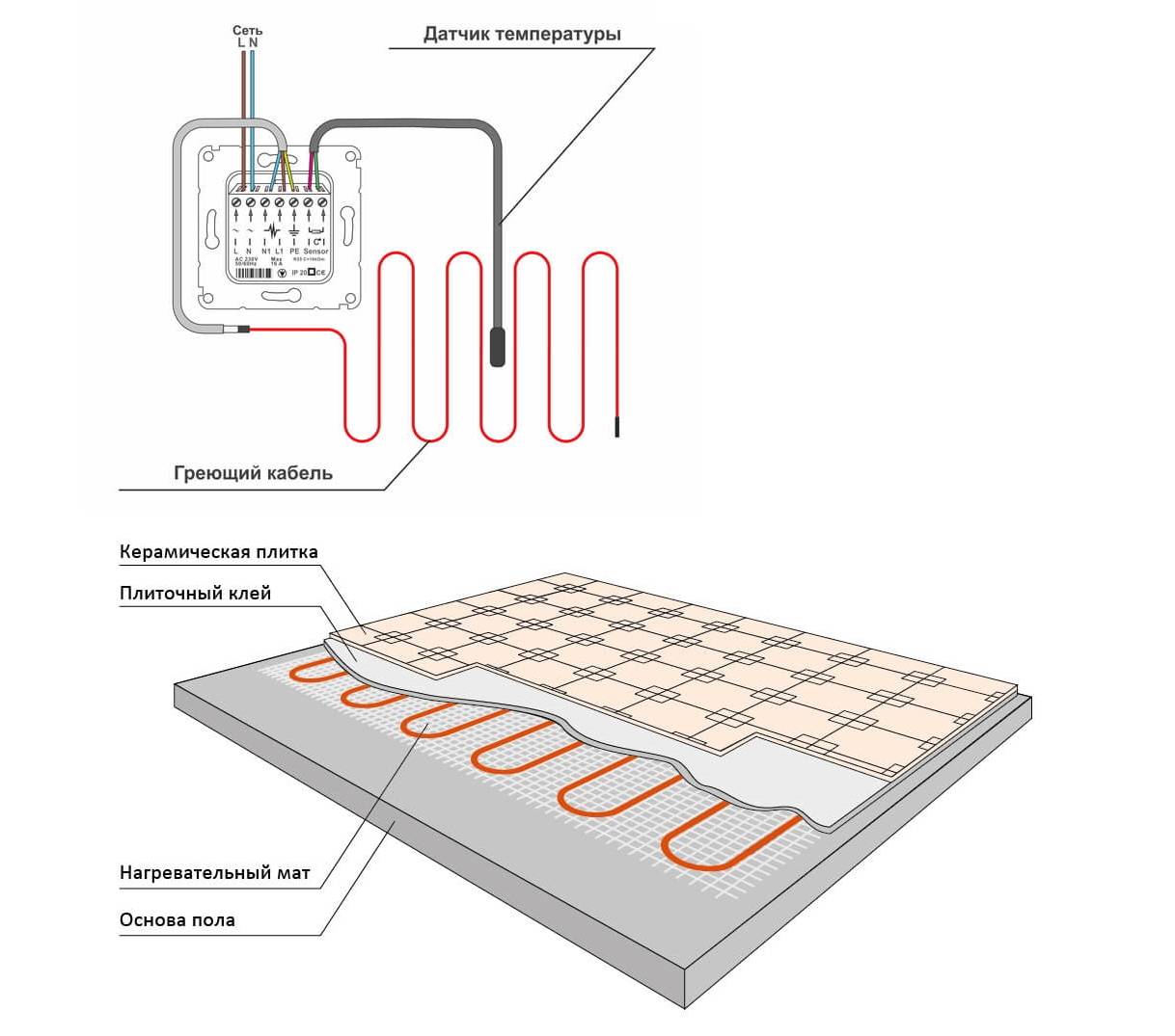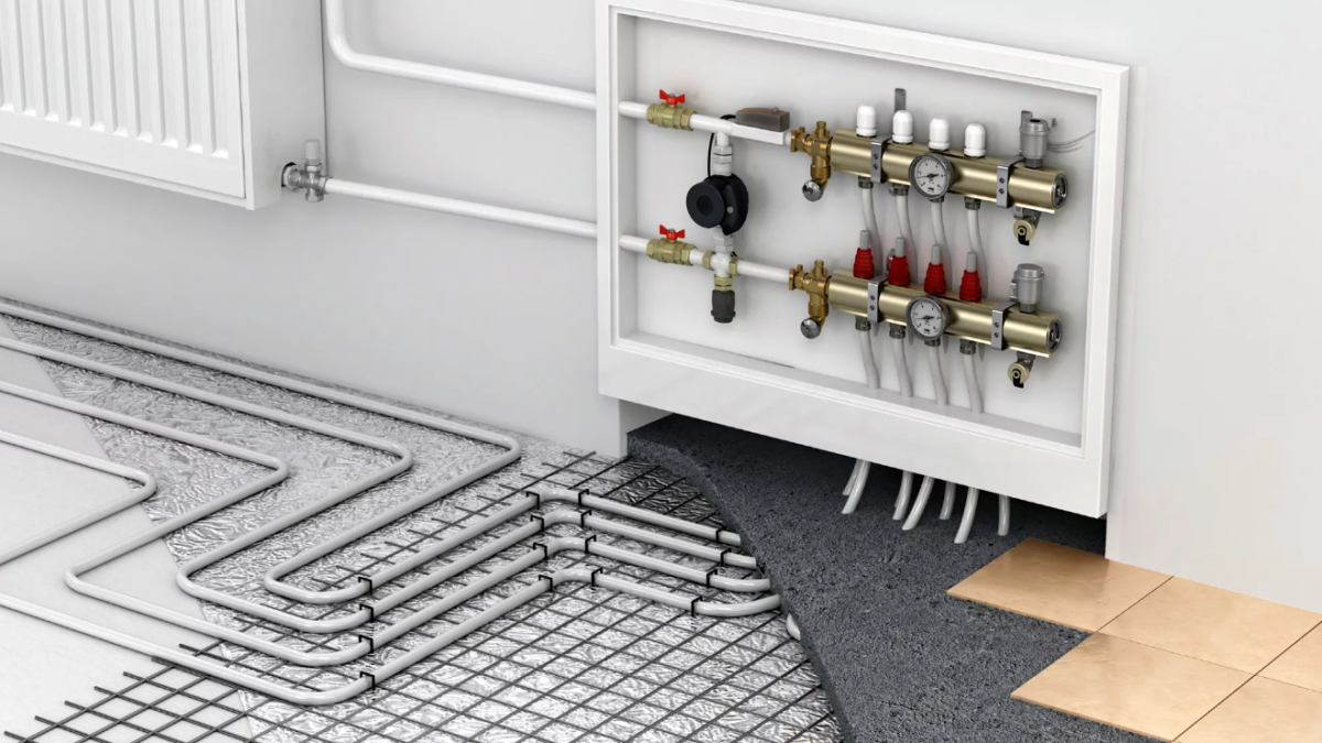 Основание должно быть сухим, чистым и ровным. Допустимый уровень перепадов — 10 мм, неровность участка, занимаемого одним контуром, — ±5 мм. Если перепады выше, пол нужно выровнять с помощью дополнительной стяжки.